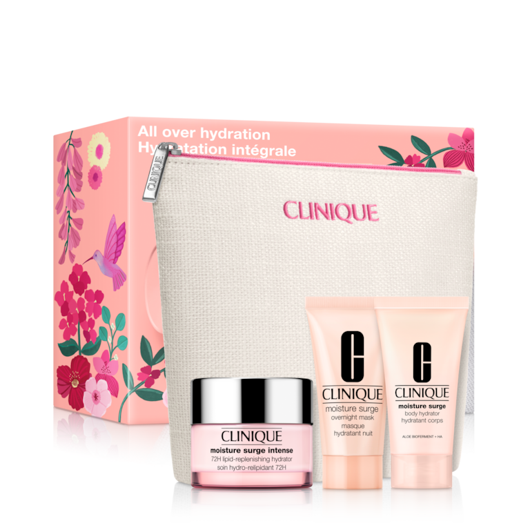 Een meest geliefd Moisture Surge™-trio voor hydratatie van top tot teen. Bevat een crème die 72 uur lang hydrateert, een gezichtsmasker en een bodylotion. Alles in een exclusief tasje.